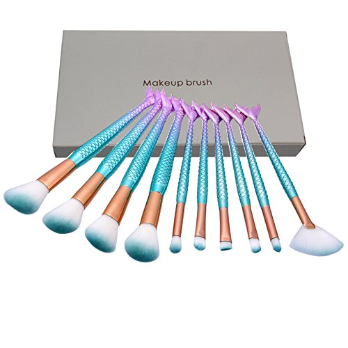 Green Beauty Mall Makeup Brush Kit Cosmetics Set, 10pcs Mermaid Makeup Brushes Kabuki Foundation Powder Cream Eyebrow Eyeliner Blush Cosmetic...
