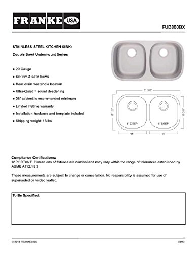 Kindred FUD800BX Large Double Bowl Stainless Steel 29.5x15.5in. Undermount Sink