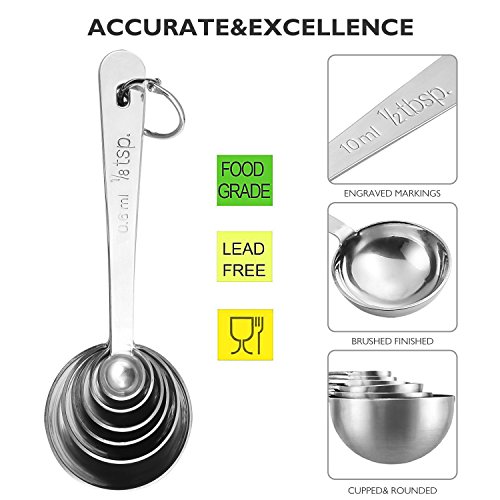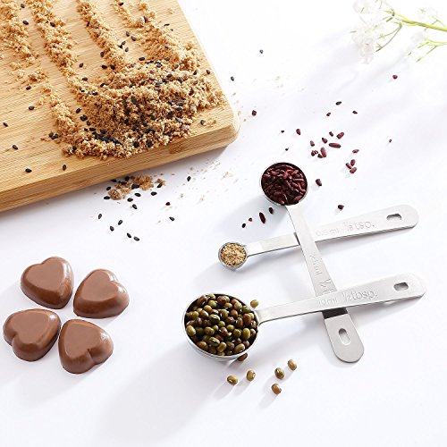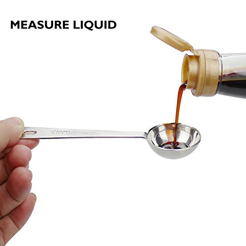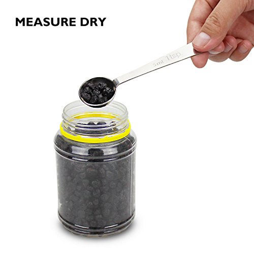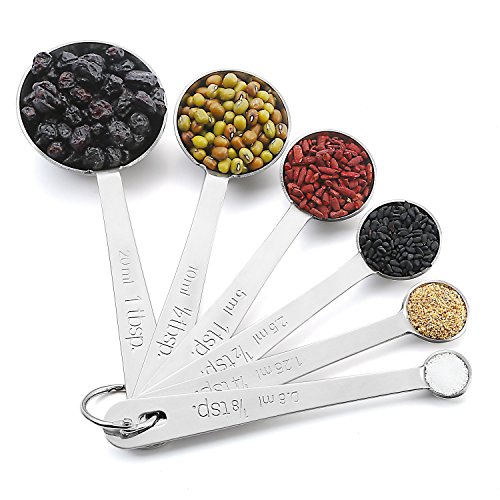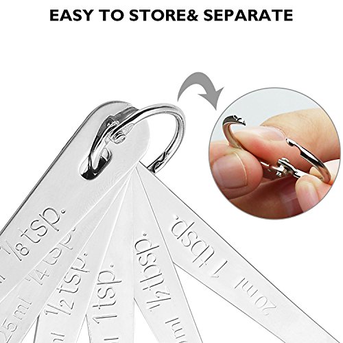 - Have you ever had trouble measuring ingredients for your dish? - Have you ever wanted to bake something new, but don't know how much 1/8-tsp or 7.5 ml is? - Have you ever been tired of using cheap plastic or flimsy metal spoons that easily warp, melt or bend? - Have you ever felt frustration of measuring a tablespoon of your favorite spice, find out that the spoons won't fit in the spice jar and made a mess on the counter?