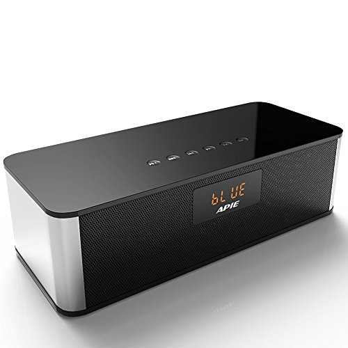 -. Feature : APIE Bluetooth speaker Jaw-dropping Sound Quality and Volume - Equipped with a passive subwoofer and two 40 mm drivers, itll deliver the rich bass and sound quality that you crave. / Wireless portable bluetooth speaker-Whether you're partying,walking out,camping,hiking,biking,or just lounging around the house,enjoy a full-range stereo sound with a impressive volume / Built-in rechargeable 3.7V, 2200 mAh lithium-ion polymer battery: Provides extended playback, enables you to stream music for up to 8-10 hours on a full charge / Hand-free - Built-in MIC for handsfree speakerphone phone calls from smartphones and iPhones.Support hand-free calls. You can answer or hang up the phone calls, finish Google Talk, Skype and video chat, even if the device is not by your side. / Broad Compatibility: Quick pairing through Bluetooth with iPhone, iPad Mini, iPad 4/3/2, iPod, Blackberry, Nexus, Samsung and other popular smartphones.