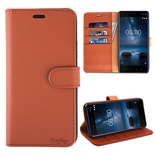 nokia 8 Hulle, Profer [Premium Leder Serie] Schutzhulle PU Leder Flip Tasche Case mit Integrierten Kartensteckplatzen und Stander fur nokia 8