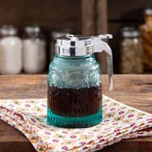 The Pioneer Woman Teal Syrup Pourer Dispenser - Embossed Pressed Glass