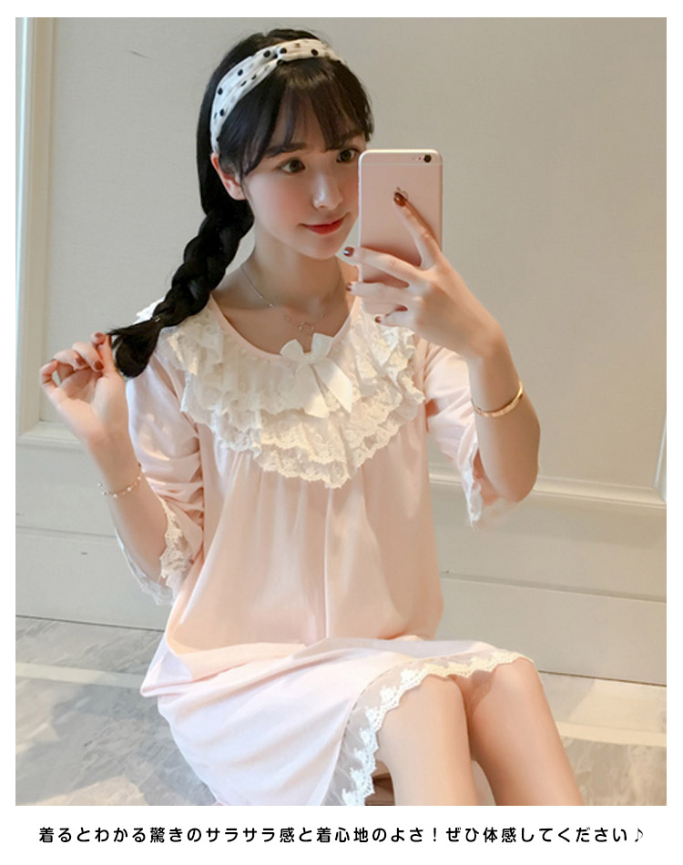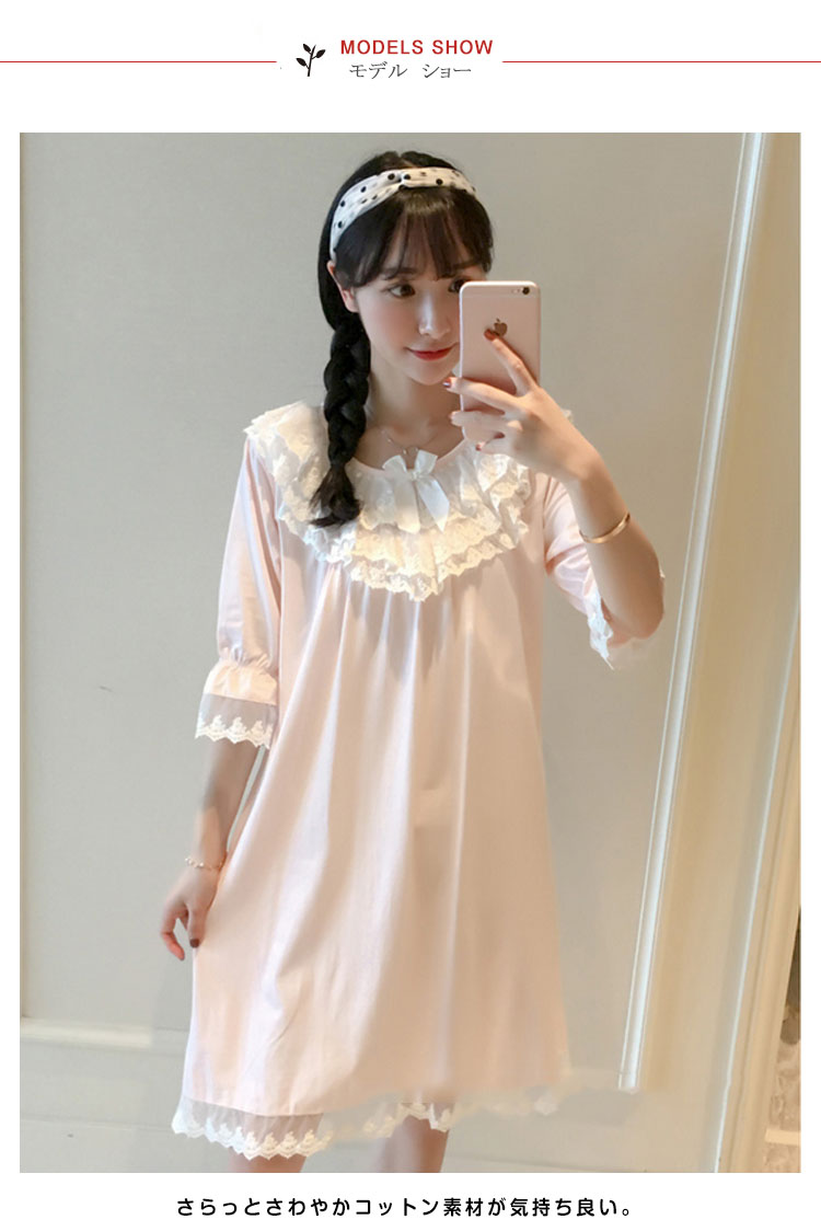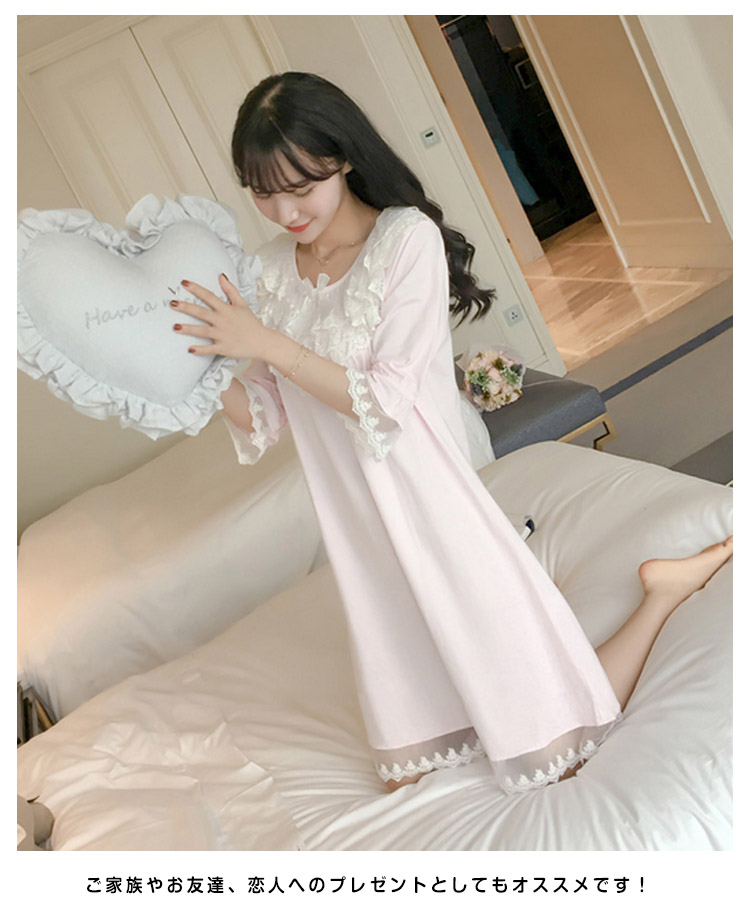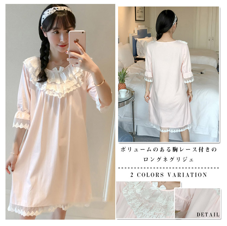 | ボリュームのある胸レース付きのロングネグリジェ。さらっとさわやかコットン素材が気持ち良い。着るとわかる驚きのサラサラ感と着心地のよさ!ぜひ体感してください♪家でも可愛くいられてゆったりできるオススメルームウエア♪ご家族やお友達、恋人へのプレゼントとしてもオススメです! | |