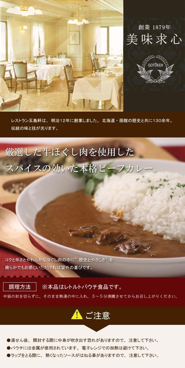 | 原材料 | 肉、カレールー(小麦粉、食用油脂、食塩、カレー粉、砂糖、その他(大豆・バナナを含む))、野菜・果実(玉葱、りんご、にんにく、生姜)、カレールー(小麦粉、カレー粉、砂糖、パーム油、野菜、豚脂(豚肉を含む)、トマトペースト、食塩、その他)、バター、カレー粉、マンゴチャツネ、小麦粉、ビーフブイヨン、チキンブイヨン、ビーフパウダー、赤唐辛子/着色料(アミノ酸等)、酸味料 ※本製品の製造ラインでは、えび、かにを使用した製品も製造しています。 |