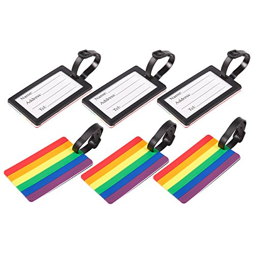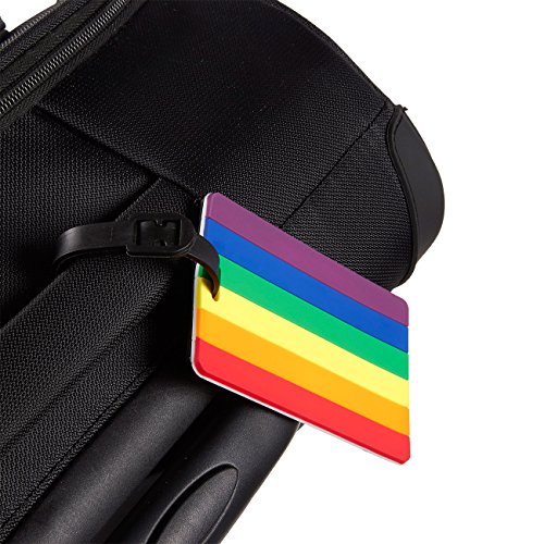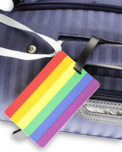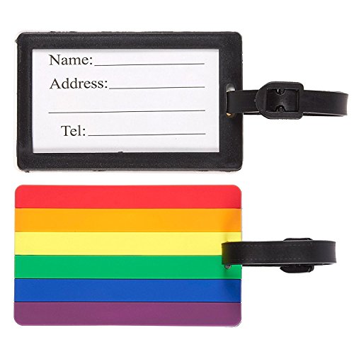 Product Description Never lose your luggage bags with Juvale's easily identifiable travel ID label tags. This set includes 6 luggage tags that are crafted of tough PVC material for long lasting use. Each label comes with a strap that allows you to easily attach and remove to and from your luggage bags. Featuring a vibrant, rainbow LGBTQ gay pride flag design, help your luggage bags stand out on the baggage carousel. Fill in your details on the information slip provided before strapping onto your bag. 0