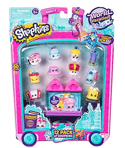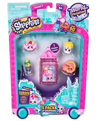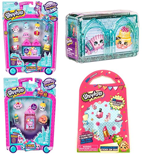 Your first stop on the Shopkins Season 8 World Vacation is Europe! Bundle includes: one 12 pack, one 5 pack, one 2 pack Mystery Box, 100+ Shopkins stickers, 4 Coloring Pages and 1 Big Sparkly Sticker (styles may vary) Collect Shopkins from several teams including German Jet Set, Italian Tour, Spanish Stopover and UK Holiday Bundle. Comes with a "hotel room" that you can connect together and build the ultimate European city for you to display your Shopkins! Use the Special Edition Bag Charm Shopkins to decorate your luggage on your next vacation and keep a look out for the Limited Edition Shimmering Snow Globes!Feature