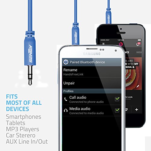 Title : Sentey Audiophile Grade 3.5mm Audio Cable Aux Cable Stereo Pvc 1.0 Meter 3ft Male to Male (Blue) LS-6602, Good for Headphones, Smartphones, Tablets, Computers, Radio Systems, TV's and more.
