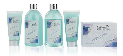 - EXPERIENCE TOTAL TRANQUILITY: Our Ocean Bliss shower bath set is everything you need to make any bath a sensational one. It comes with a shower gel, bubble bath, body lotion, body scrub, and bath salts, creating a complete recipe for thorough relaxation.