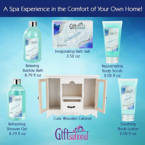 Spa Gift Basket With Refreshing Ocean Bliss fragrance - Gift Set Includes Shower Gel, Bubble Bath, Bath Salts And more - Great Mother's Day, Wedding, Birthday, or Anniversary Gift for Women and Girls