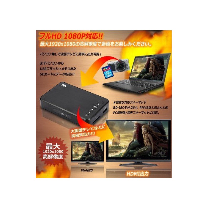 원본상품명: ウルトラ メディアプレ?ヤ? DIVX XVID MPEG4 VOB PC不要 TV 再生 HDMI VGA