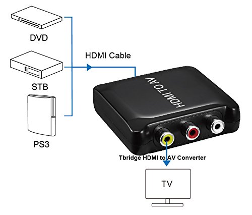 Tbridge Full HD 1080P HDMI to CVBS AV composite video and stereo audio Converter for PC Laptop Xbox PS4 PS3 TV STB VHS VCR Camera DVD and More