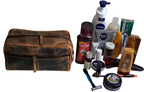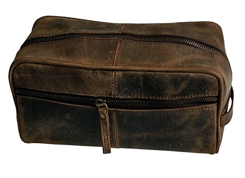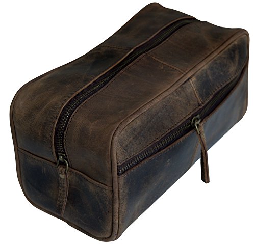 MNI Handmade Buffalo Genuine Leather Toiletry Bag Dopp Kit Shaving and Grooming Kit for Travel ~ Gift for Men Women ~ Hanging Zippered Makeup Bathroom Cosmetic Pouch Case