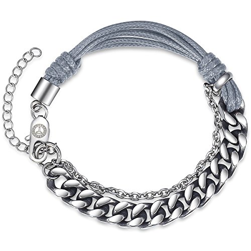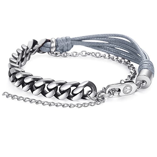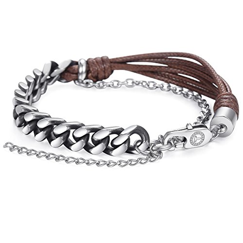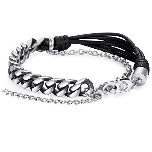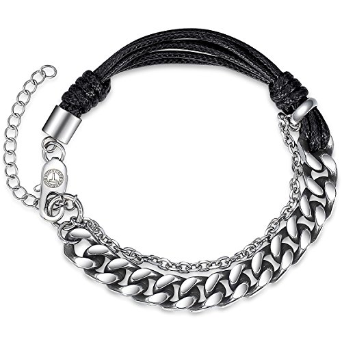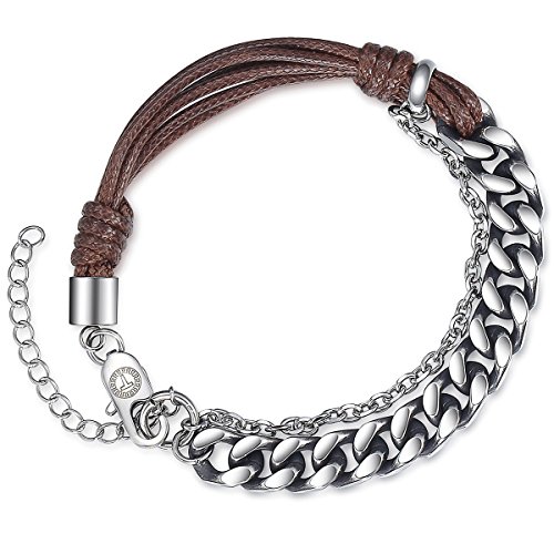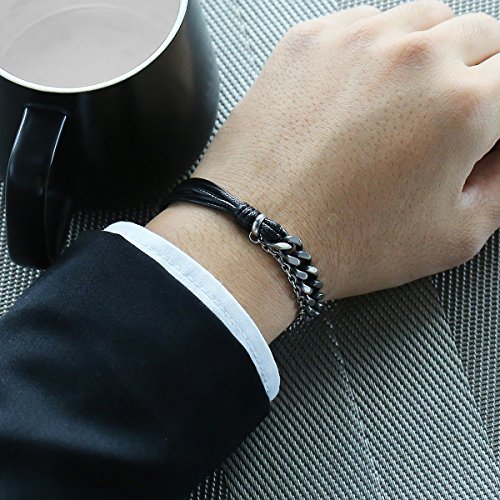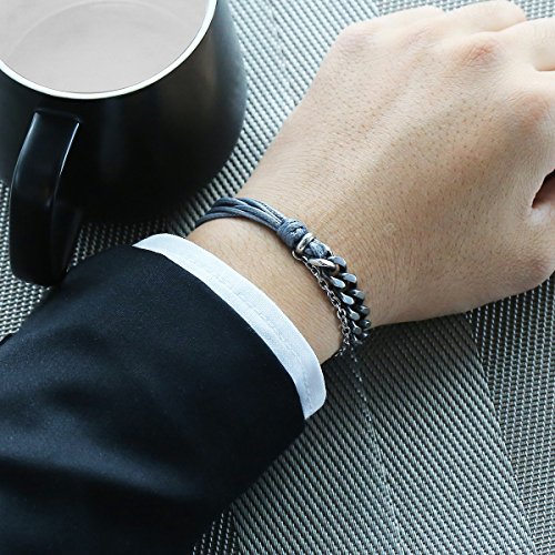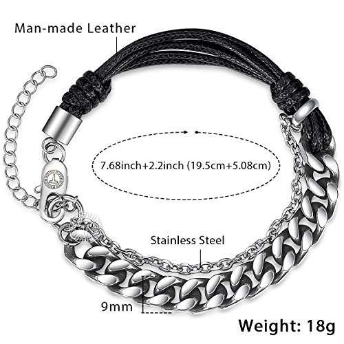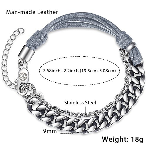 -. Feature : Measurement: Length: 7.68inch+2.2inch(Adjust Chain) Width: 7mm(Steel Link), 5mm(Leather) Weight: 18g / Material: Stainless Steel+Man-made Leather / 100% Brand New, Super Cool Design / Gunmetal Silver Curb Cuban Stainless Steel Womens Mens Bracelet Double Chain / Gift, Present for Birthday