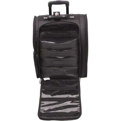 Sunrise Nylon Professional Soft Sided Rolling Makeup Case with Pouches in Black