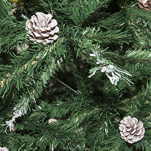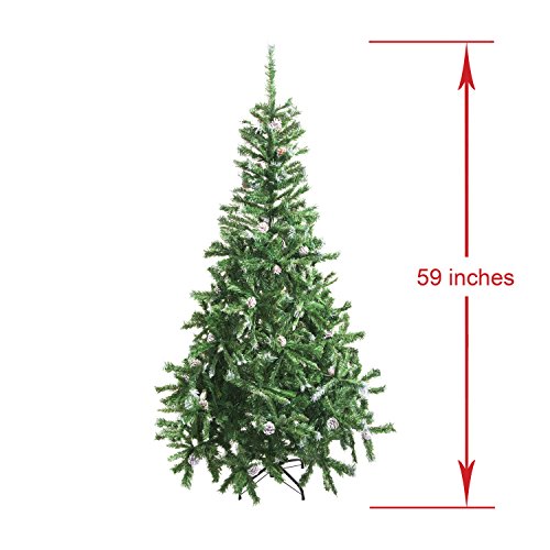 Get into the holiday spirit with this luscious ALEKO Christmas tree and decorate your home with holiday cheer. Our premium artificial tree is made out of dense PE needles, giving it that fresh cut look that will last all season. The tips are sculpted to enhance the lifelike appearance, and the staggered branches create a fuller profile. No more messy needles, sap, or spilled water. It's quick and easy to set up, and creates a warm holiday environment. The tree is 5 feet tall, has 400 pieces of beautiful white pine tips, and is decorated with snow covered pine cones. Great for indoor and some outdoor use. Decorate any room in your home or office. Bring joy and warmth into this holiday season for you and your friends and family to enjoy. It comes with a green metal stand. Our trees are of great quality, making it your best choice. Terrific value. Fast Shipping. 5 feet tall. 400 Tips.Feature
