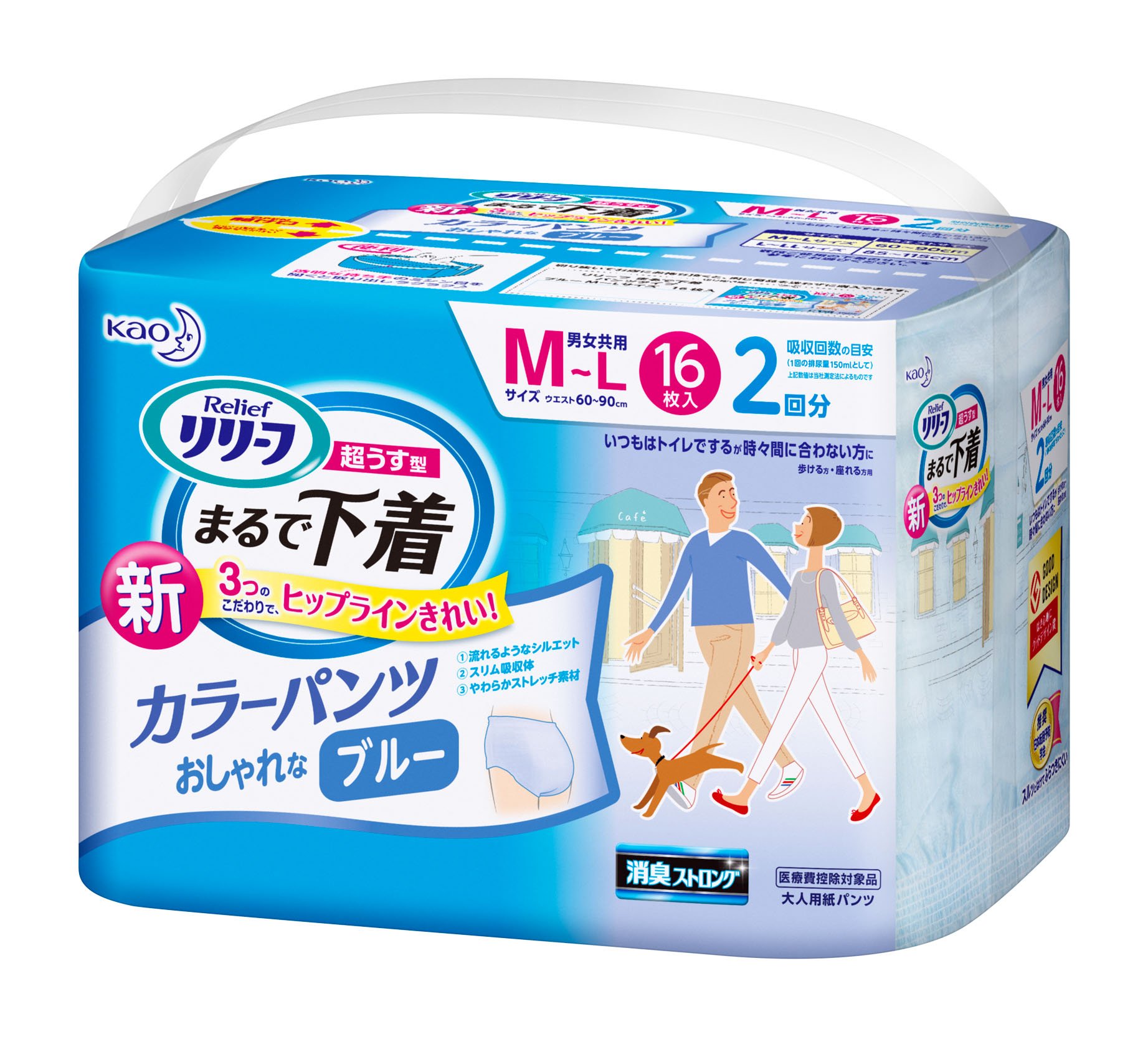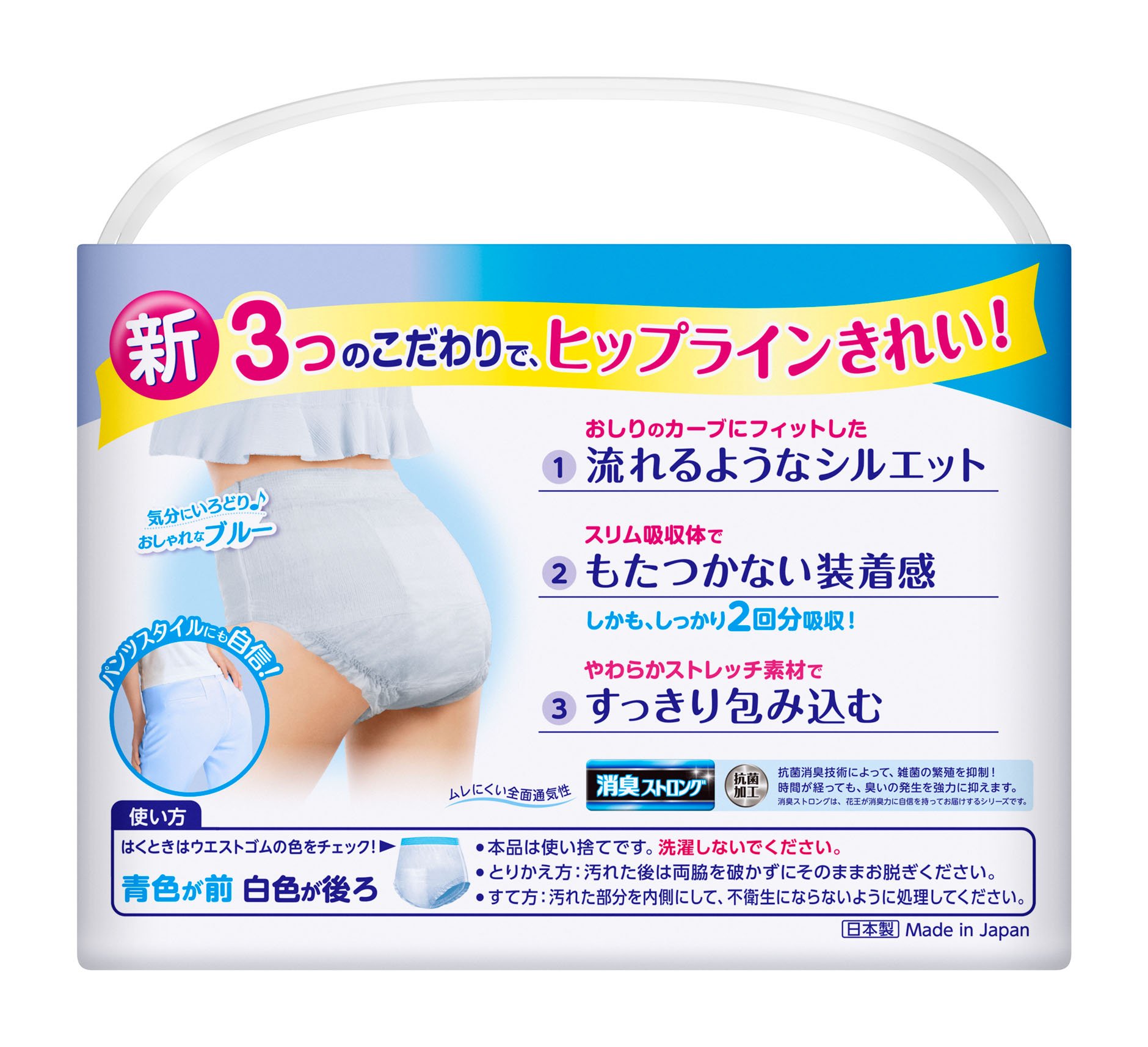 It is refreshing blue like it was not so far. It can be warm without calming color and resistance. It is firm and durable with thin and stretchy. The amount of water absorption is also large. The silhouette when I am young is very beautiful and beautiful even when it is a pants style. There is only a Good Design Award. The Good Design Awards so far have many beautiful things just looking but this is quite a matter of design and functionality. For the elderly I'm also happy about the way the front and back are easy to understand, I saw it on television, people overseas said that they would like to wear pants-type diapers such as when participating in a demonstration or when the toilet is not nearby at the New Year Countdown It was. I thought that it was for nursing care so far, but I would like to continue using it anywhere else. I am happy that more resistant designs will increase.