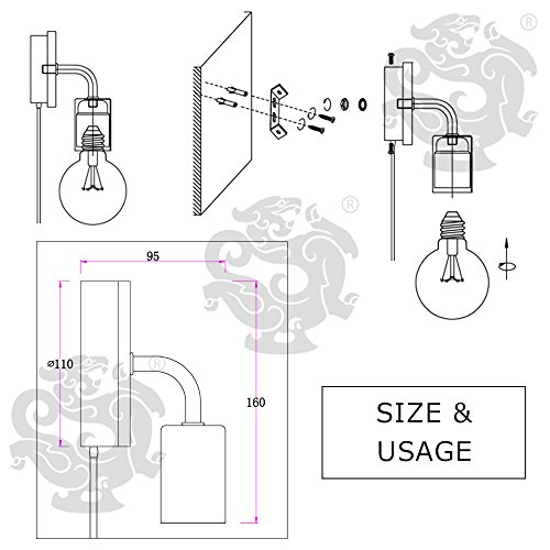 - Hassle Free Installation, this lamp comes with wall plug in the cord, no rewiring need, mount the plate to wall or board and plug to wall socket