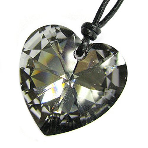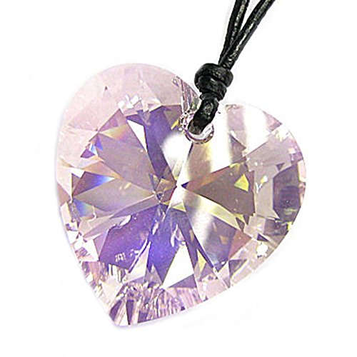 A stunning Swarovski Elements Crystal heart pendant is suspended from a leather cord. Thanks to the double adjusted knot, the necklace can be adjusted between 14" to 24".