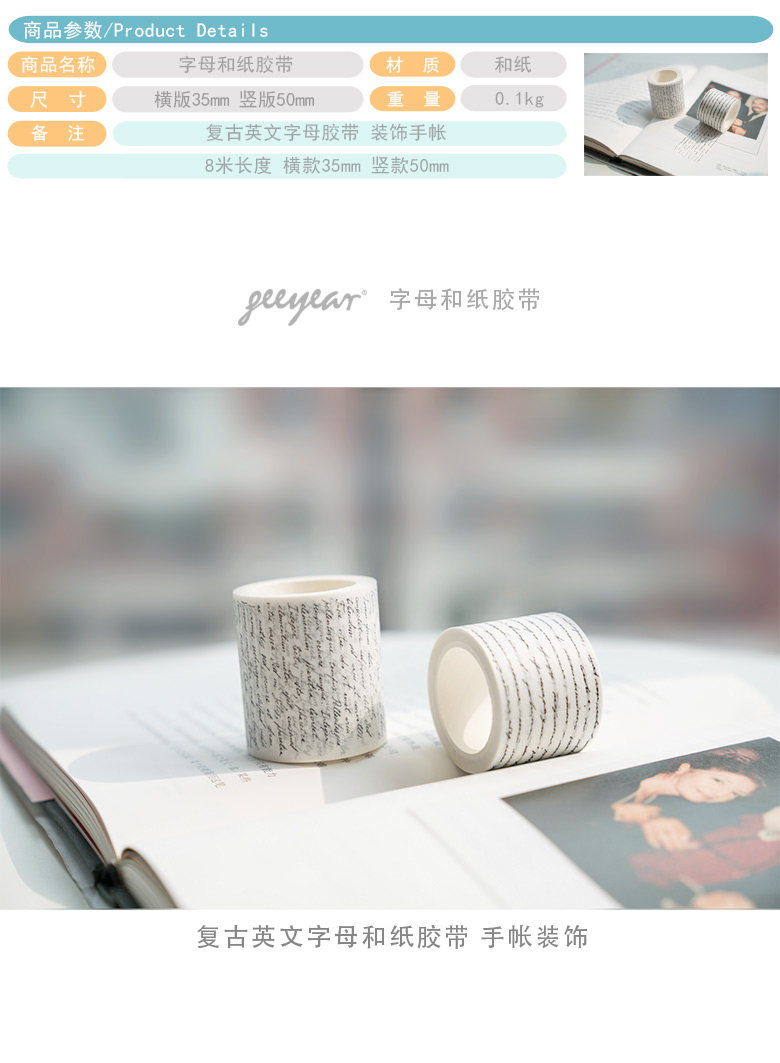 字母宽版 复古和风手账和纸胶带 古风手帐纸胶带贴纸装饰 8米