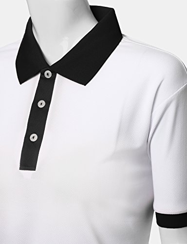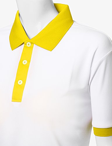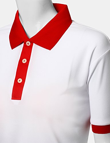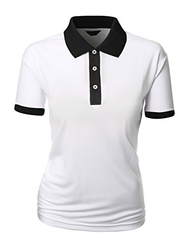 2-tone short sleeve T-shirt with unique collar and sleeve color contrast design. Maintains shape upon repeated wash.