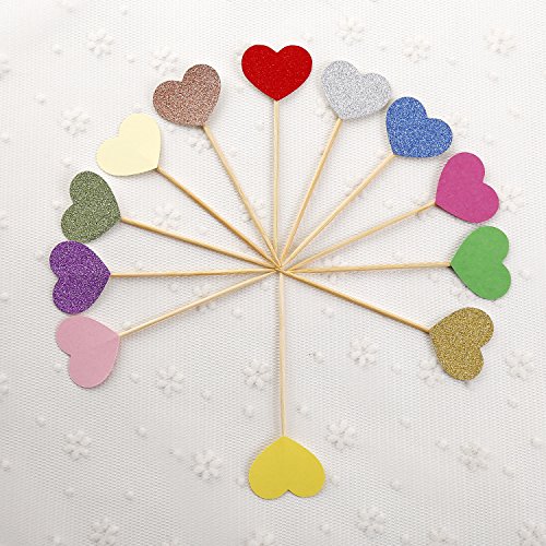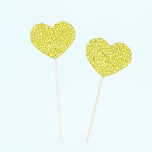 50pcs Cupcake Topper Gold Glitter Love heart Cupcake Toppers Wedding Bamboo Fruit Cocktail Forks Party Finger Food Wedding Cupcake Toppers, Bridal Shower Cupcake Toppers Valentine's Day