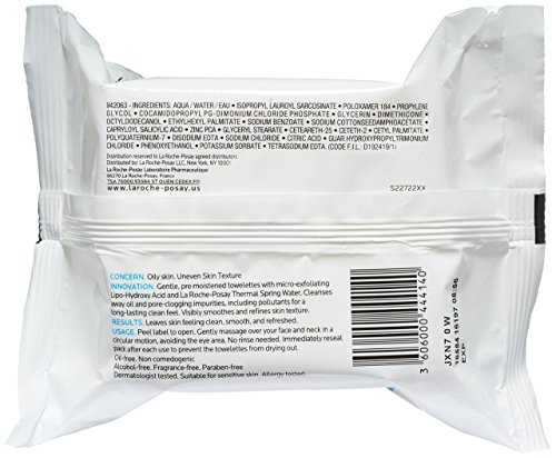La Roche-Posay Effaclar Clarifying Oil-Free Cleansing Towelettes Facial Wipes, 25 Count