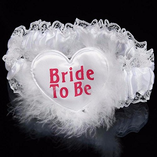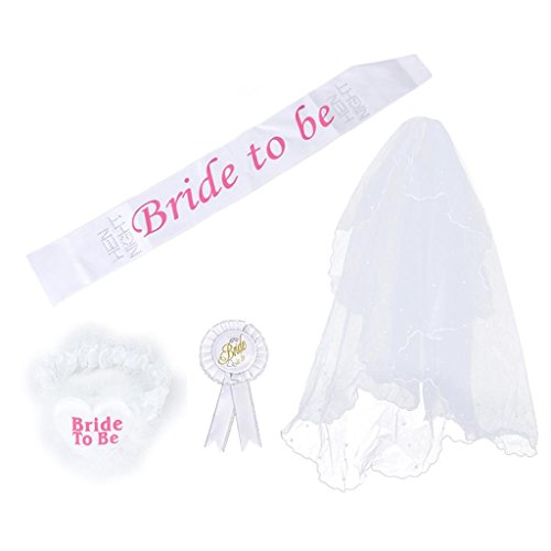 Pack include: 1 X white double ribbon edge center cascade bridal wedding veil,1 X white lace garter,1 X pink bride to be letters satin sash,1 X bridal badge brooch