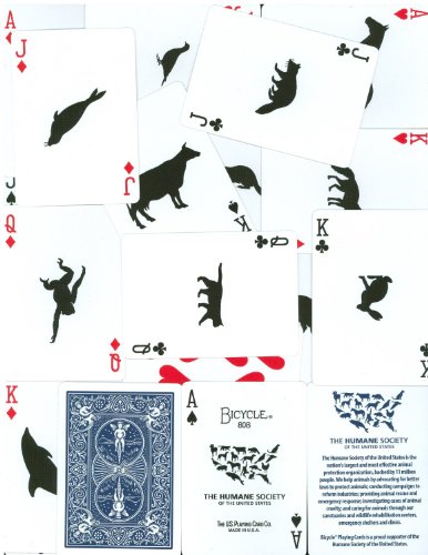 Studio : The United States Playing Card Co. Publisher : The United States Playing Card Co. Binding : Sports Product Description Bicycle playing cards has teamed up with the Humane Society of the United States to create this special deck and is a financial supporter of the great work of the HSUS. USPC donates 0.15 per deck sold. 0