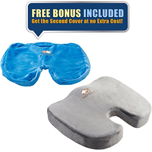 -. Title : Coccyx Memory Foam Seat Cushion for Office Chair, Car and Wheel Chair - This Orthopedic Tush Cush Comes with Extra Blue Cover - Highly Comfortable and Portable - Lifetime Guarantee - CushionCare