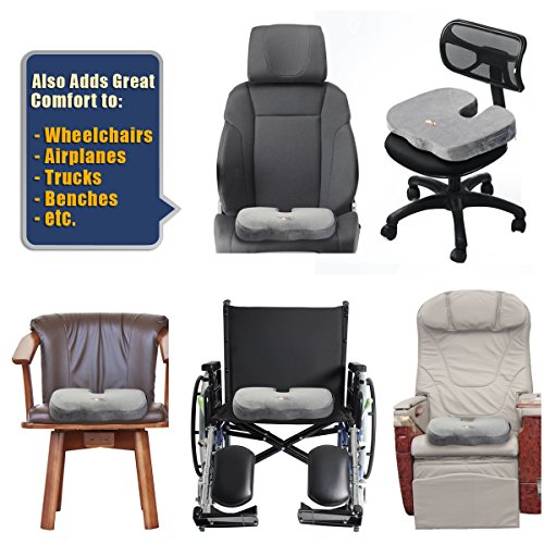 -. Feature : TOP CUSTOMER REVIEWS #1 - "It was getting too painful sitting down for hours on my chair and I had tried many different items as a cushion but they all never quite did the job as pain would always develop in certain spots. Now, I could just place it in there and be 100% free from discomfort or shifting my weight around" / TOP CUSTOMER REVIEWS #2 - "I have a very bad back and pain that goes down the legs to the feet this cushion helped, it did not take all the pain away , but it was not as bad and I was able to sit in the car a little longer without the pain radiating down my legs as quickly when I did not use the cushion." / TOP CUSTOMER REVIEWS #3 - "Beautifully made, sturdy, supportive but comfortable. I've bought various cushions through the years. The regular "foam" cushions quickly lose their shape, go flat and become useless. This one comes with a pretty grey/blue velour cover, a spare is enclosed. There is a fabric handle sewn into the side which makes it easier to carry if you want to use it in various places. So far, I'm very happy. So is my lumbar spine!" / TOP CUSTOMER REVIEWS #4 -"This item is 100% memory foam without fillers (opened it up and checked to be sure)." / LIFETIME GUARANTEE - Guaranteed to last a lifetime, and if it doesn't, you get 100% of your money back without any questions asked. Stop wasting time looking for other cushions. Buy With Full Confidence!