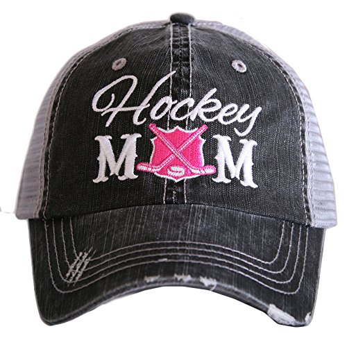 Binding : Apparel Product Description Look stylish with this Katydid Hockey Mom Women's Trucker Hat - Premium Embroidery, Distressed Style, Adjustable Velcro Tab, Curved Bill, Designed and Embroidered in the USA