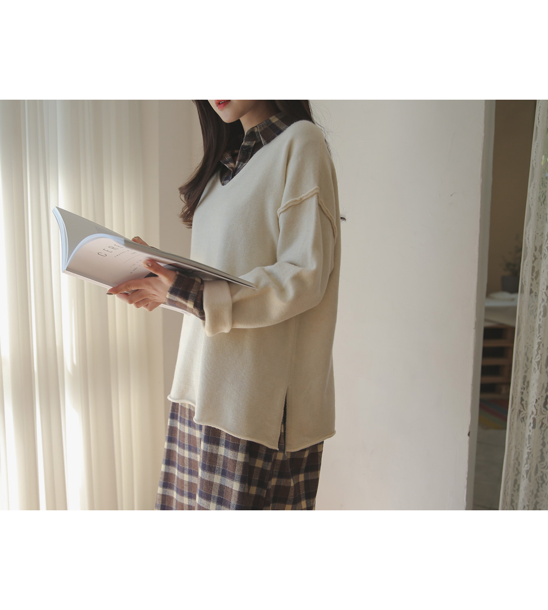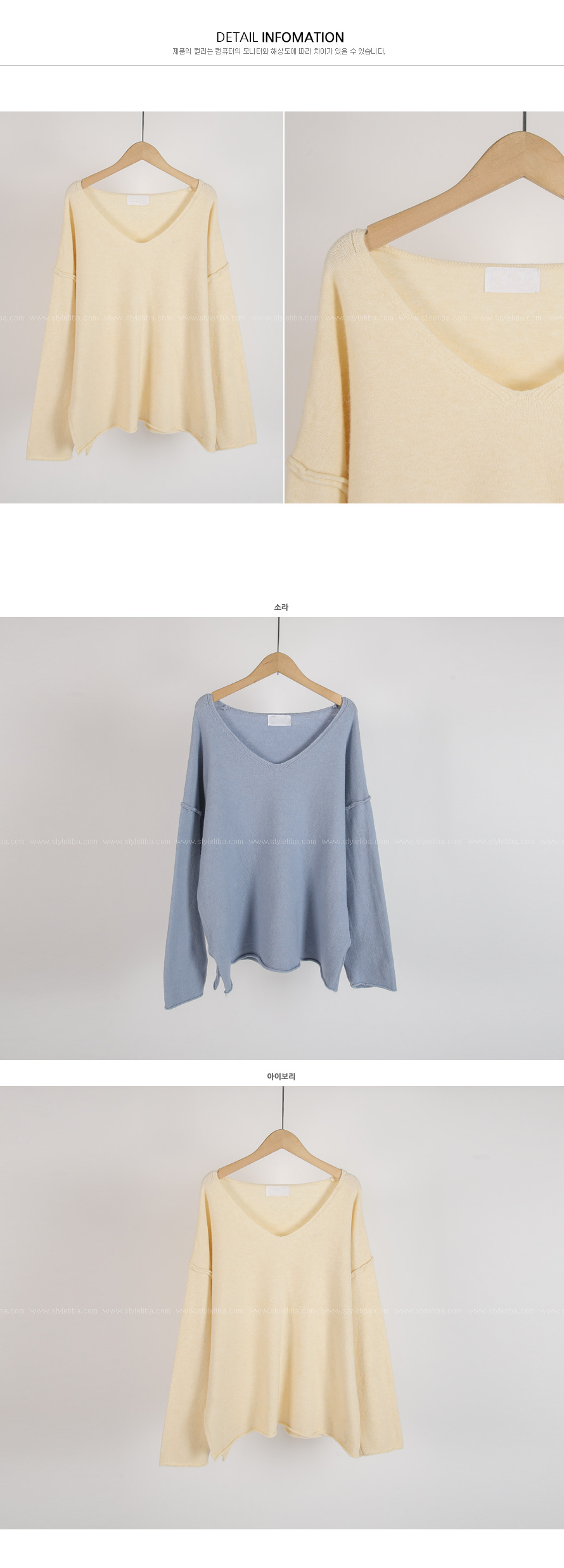 많이 넓지 않은 브이네크라인으로 부담없이 편하게 입을 수 있으며