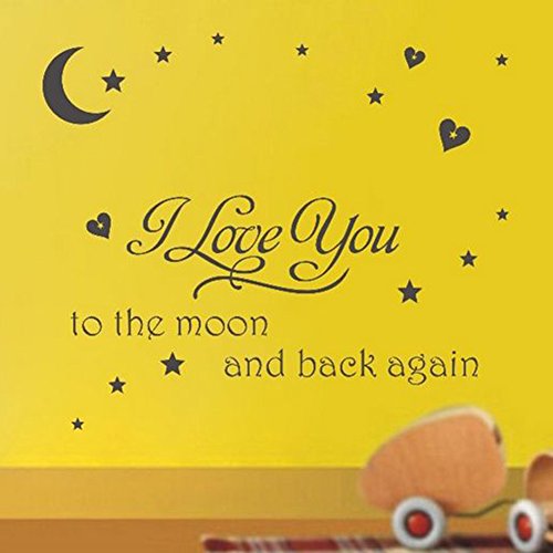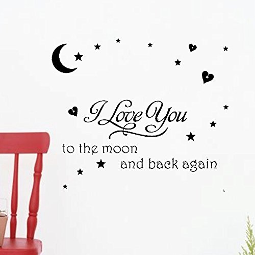 -. Title : Black Vinyl Wall Decal I Love You to the Moon and Back Again Wall Sticker Letters Words Baby Kids Room Bedroom Art Wall Deco