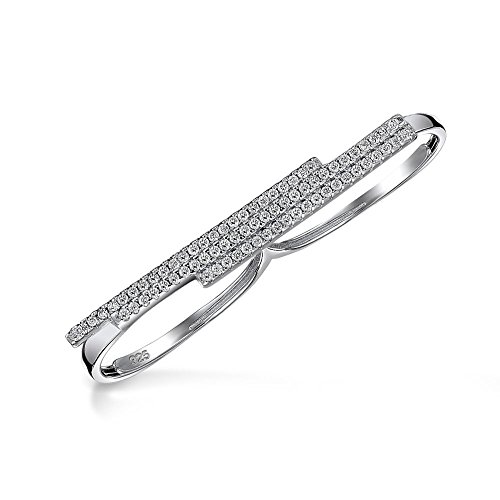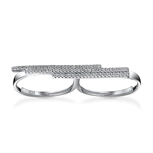 -. Title : Bling Jewelry Adjustable Pave CZ Bars Modern Two Finger 925 Silver Ring