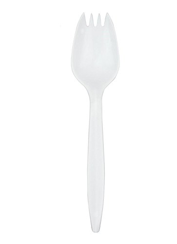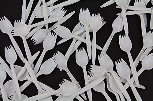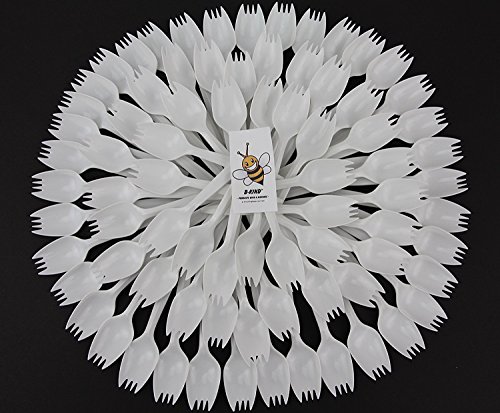 B-Kind Party Pack 100 Count Cutlery Thick Strong and Durable Medium Weight Disposable White Sporks for Camping, Picnics, Parties, and Weddings