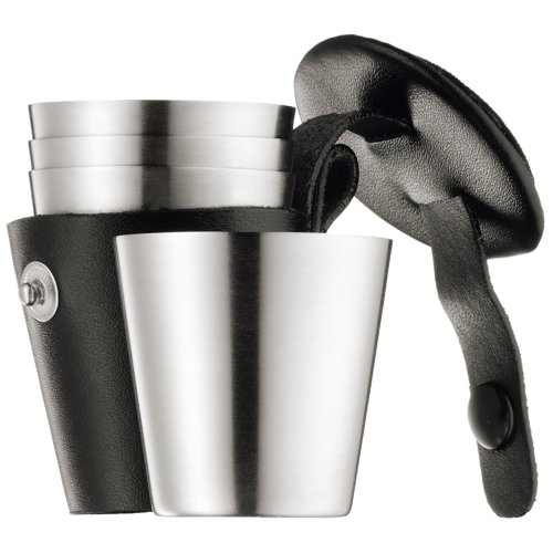 -. Feature : Inhalt: 1x Flachmann, 1x Trichter, 4x Stamper im Lederetui / Material: Cromargan® Edelstahl Rostfrei 18/10, matt / Größe: B 10 cm, H 13 cm, V Flachmann 20 cl, ,