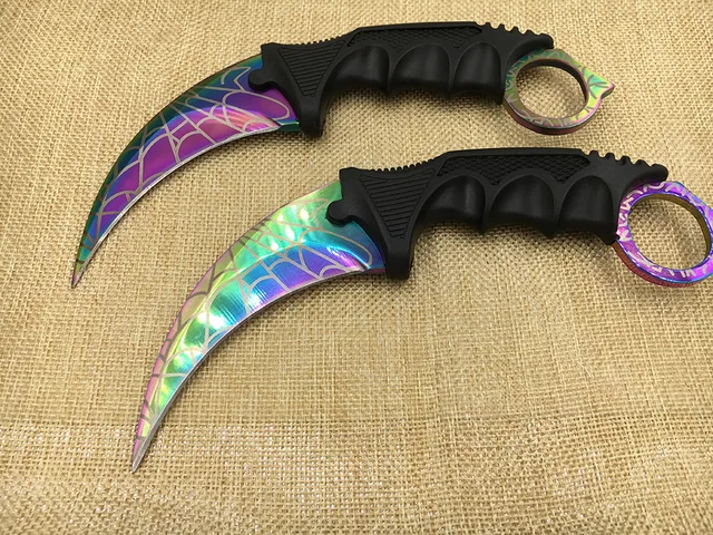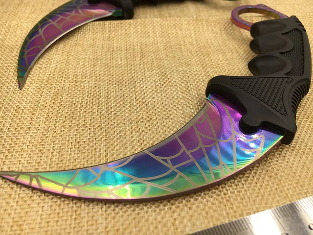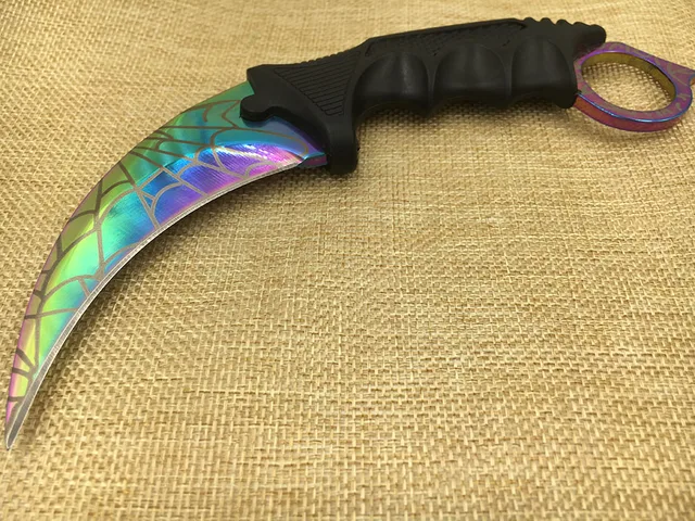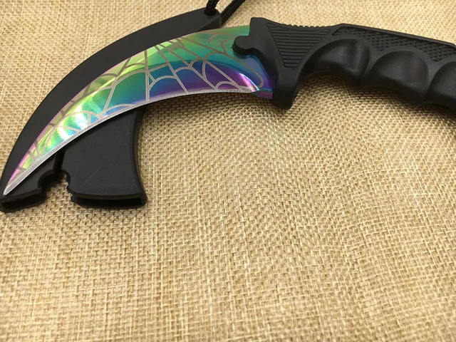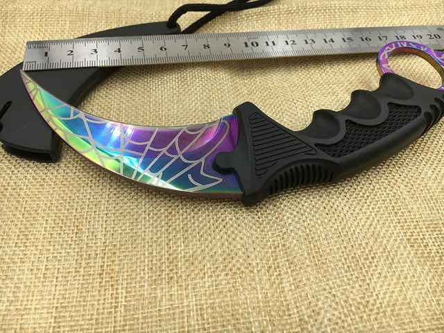 블레이드 두께: 0.38 센치메터 핸들 두께: 1.6 센치메터 블레이드 재질: 스테인레스 스틸 블레이드 표면: 여러 가지 빛깔의 페이드, 화이트, 블랙 핸들 재질: 플라스틱 칼 무게: 106.5 그램 총중량: 145.5 그램 칼집: 플라스틱 + 로프 패키지: 1 칼 + 1 칼집 + 로프