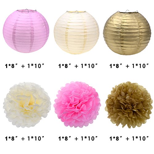 Outus Tissue Paper Pom Pom Flowers and Paper Lanterns Party Decoration, 12 Pieces