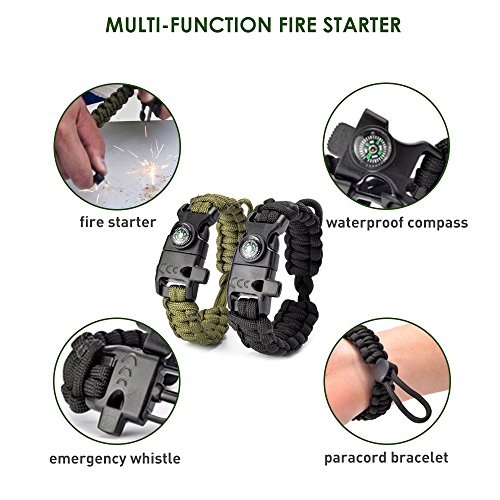- LIGHTWEIGHT & COMFORTABLE DESIGN: Make the Paracord Bracelet an indispensable survival accessory for any camping, fishing, hiking or hunting trip. MAGNESIA ROD (Flint Fire Starter) gives you a secure solution when lighting a fire is a matter of an emergency. Rub the rod to the to get spark and fire under any weather conditions. Please check the fire starter instructions image.