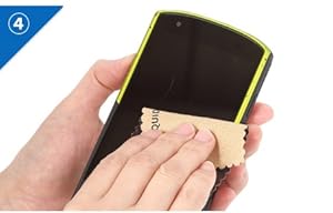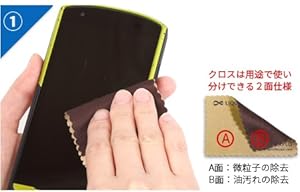 1. スマートフォンの電源を切り、付属のマイクロファイバークロスで画面上のホコリと油分を綺麗に拭き取ります。