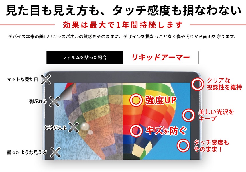 ・リキッドアーマーの塗布により、キズや割れなどの損傷を完全に防ぐわけではありません。リキッドアーマーの塗布後の傷等を当社では保証いたしかねます。