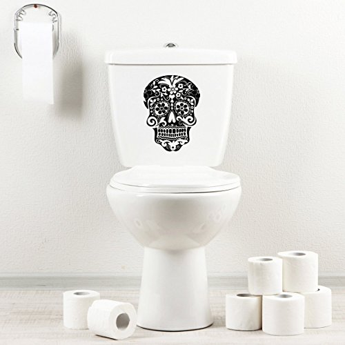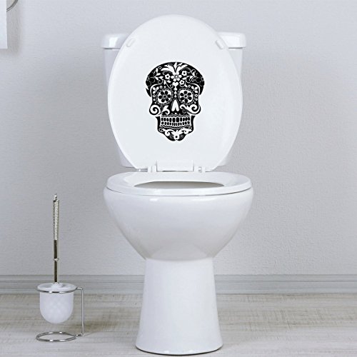 StickAny Bathroom Decal Series Mexican Skull Sticker for Toilet Bowl, Bath, Seat (Black)