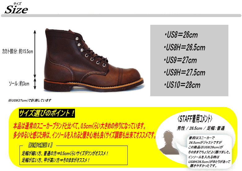 | 商品説明 | <BRAND STORY> 創業100年を超えてなお,良いものだけを作るというこだわりを持ち続けるレッドウィング。現在でもメイドインUSAで生産され続け、世界中のワークブーツを代表するブランドとなっています。 <ITEM INFO> ・レッドウィングワークブーツの人気アイテム「アイアンレンジブーツ」。 ・履き込むほどに味が出るレザーが最高。 ・キャップド・トゥーと呼ばれるデザインとヒール付きのコルクソールを組み合わせたカジュアル,フォーマルと様々なシーンで活躍できる一足です。 ・アイリッシュセッターやベックマンでは満足できなくなった方にもオススメです! |