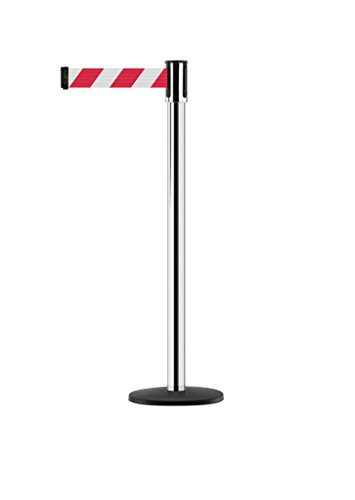 Tensabarrier - 890B-33-1S-1S-MAX-NO-D3X-C - satin chrome post, 2" wide, 13' length Chevron Red & White belt
