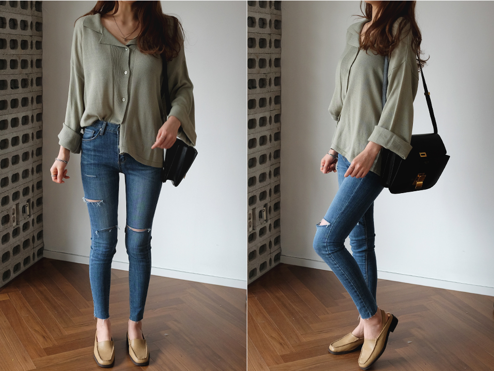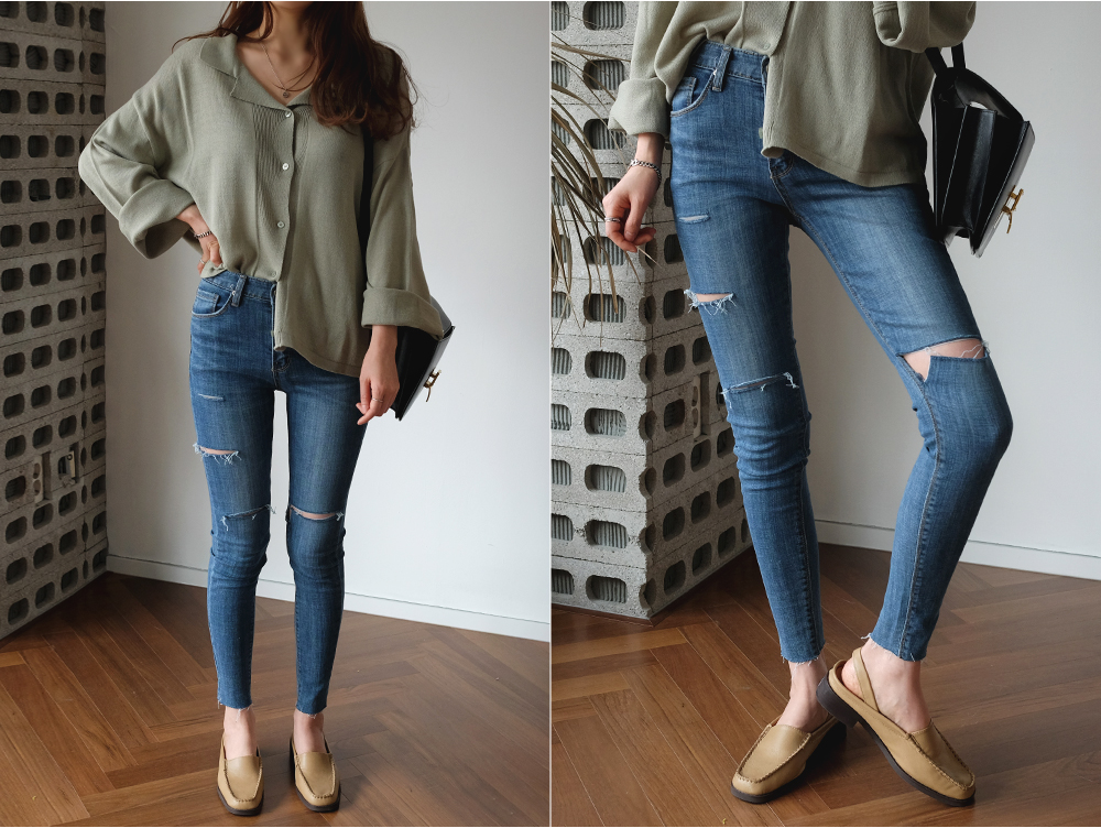 데님 스키니와 매치하면 자연스러운 청순함이 연출되고