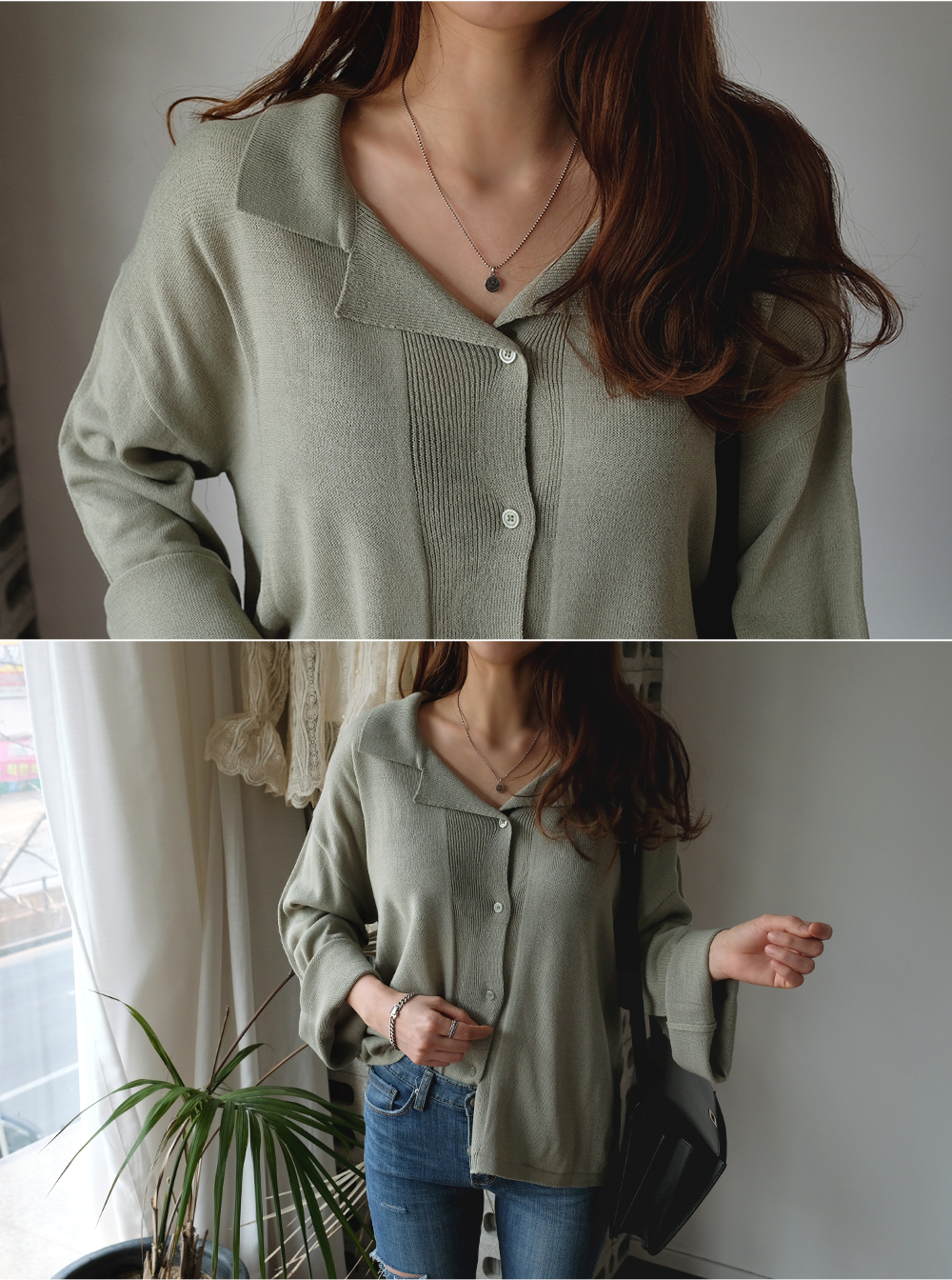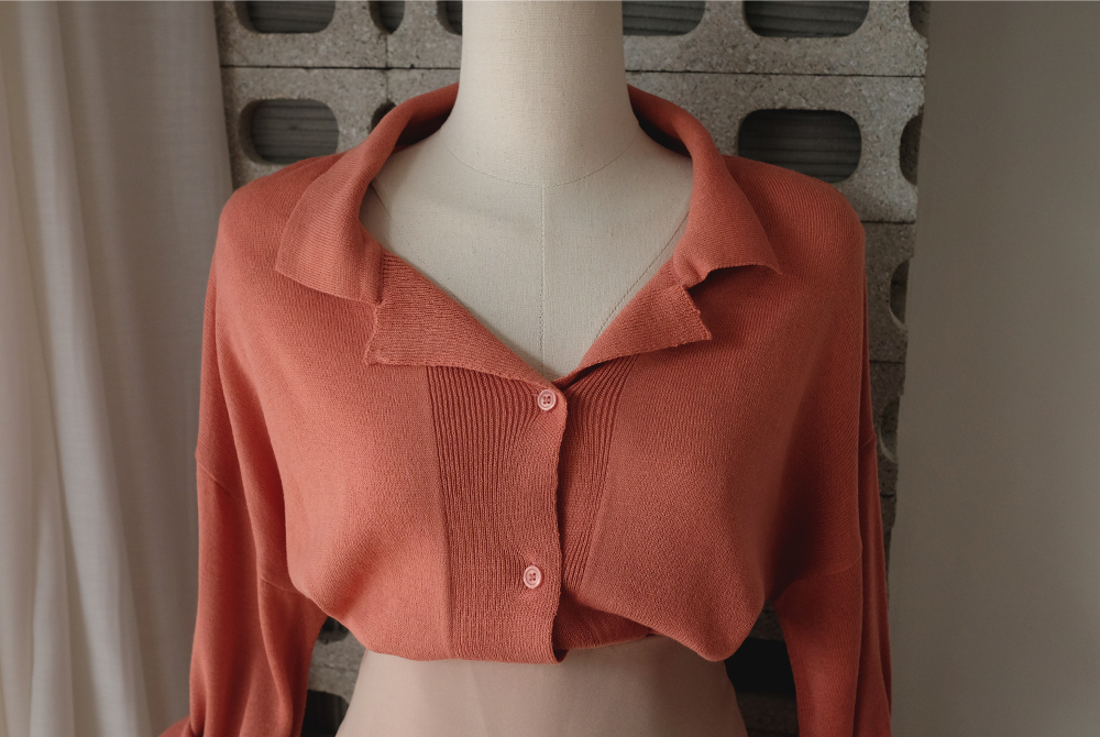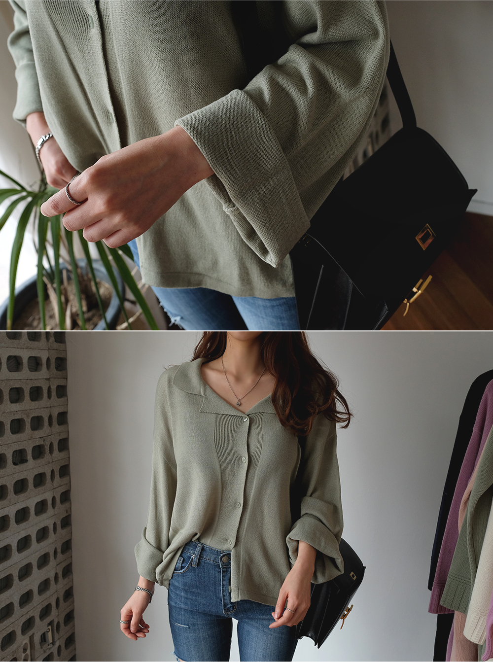 단추라인 쪽의 촘촘한 골지디테일로 고급스러움을 살려주었어요.