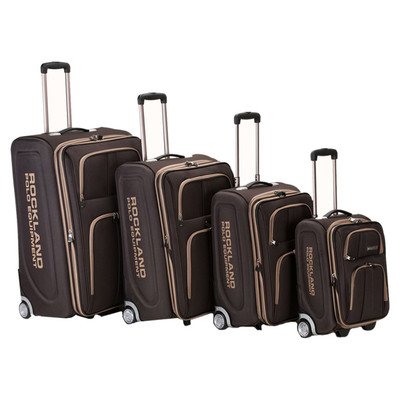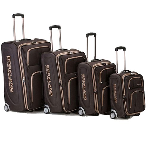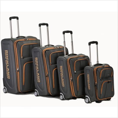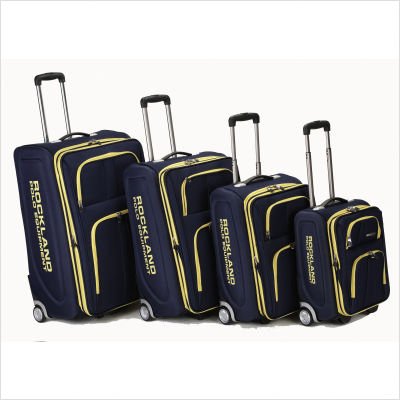 Studio : Rockland Publisher : Rockland Binding : Misc. Product Description Travel in style with this 4 pc. luggage set. eva-molded body with 1200 denier polyester fabric for durability. bags are lightweight, fully lined and have heavy duty in-line jumbo wheels. feature retractable push button aluminum handles. two secured zippered front pockets. set includes a 30" upright measures 30"h x 20"w x 12"d, 26" upright measures 26"h x 18"w x 11"d, 22" upright measures 22"h x 16"w x 10"d, and 18" upright measures 18"h x 14"w x 9"d. 0