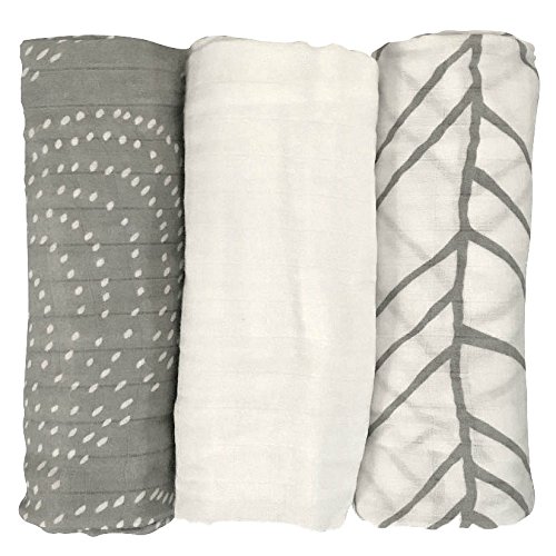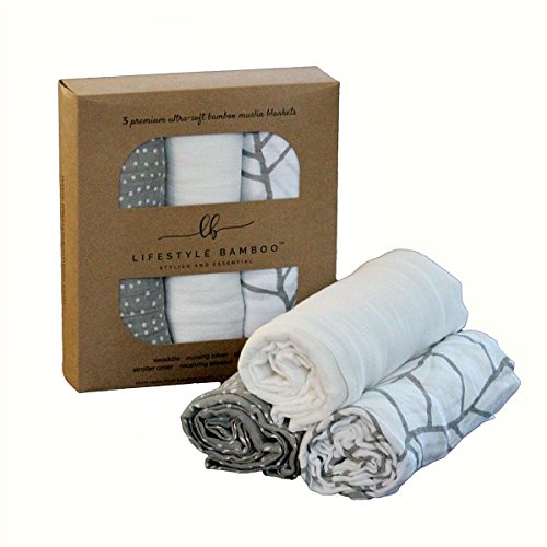 LIFESTYLE BAMBOO Bamboo Swaddle Blankets - Bamboo Muslin Blanket - 3 pk - White & Grey - Unisex - Neutral Colors - Baby Boy - Baby Girl - Baby Shower Gift