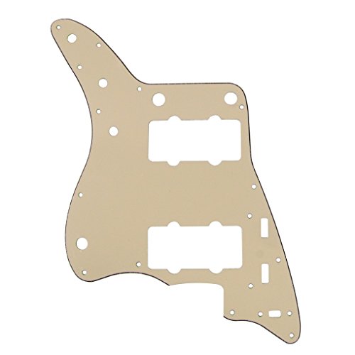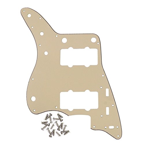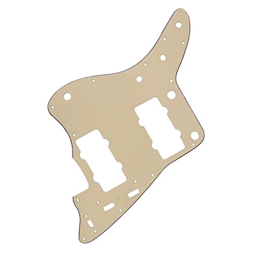 Studio : iknmusic Publisher : iknmusic Product Description For Vintage Fender Style Jazz master Style Guitar.Color: Cream3Ply 17 mounting screw holes in the side of the pickguard.PVC MaterialAnti-scratch to protect the guitar.Double protective film on the pickguard, it will become very smooth after you peel off the protective filmPackage Included:1 Pcs Pickguard 25pcs mounting screws 0