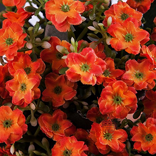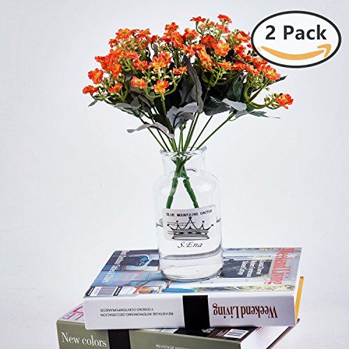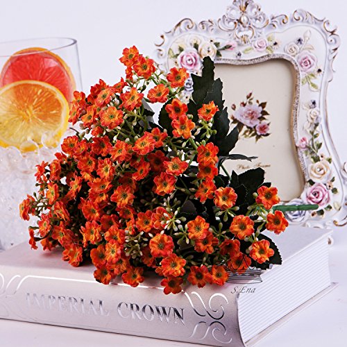 S.Ena, 6 Branch 36 Heads Artificial Silk Fake Flowers Leaf Little Milan Wedding Floral Home Decor Bouquet Birthday Party DIY, Pack of 2 (Orange)